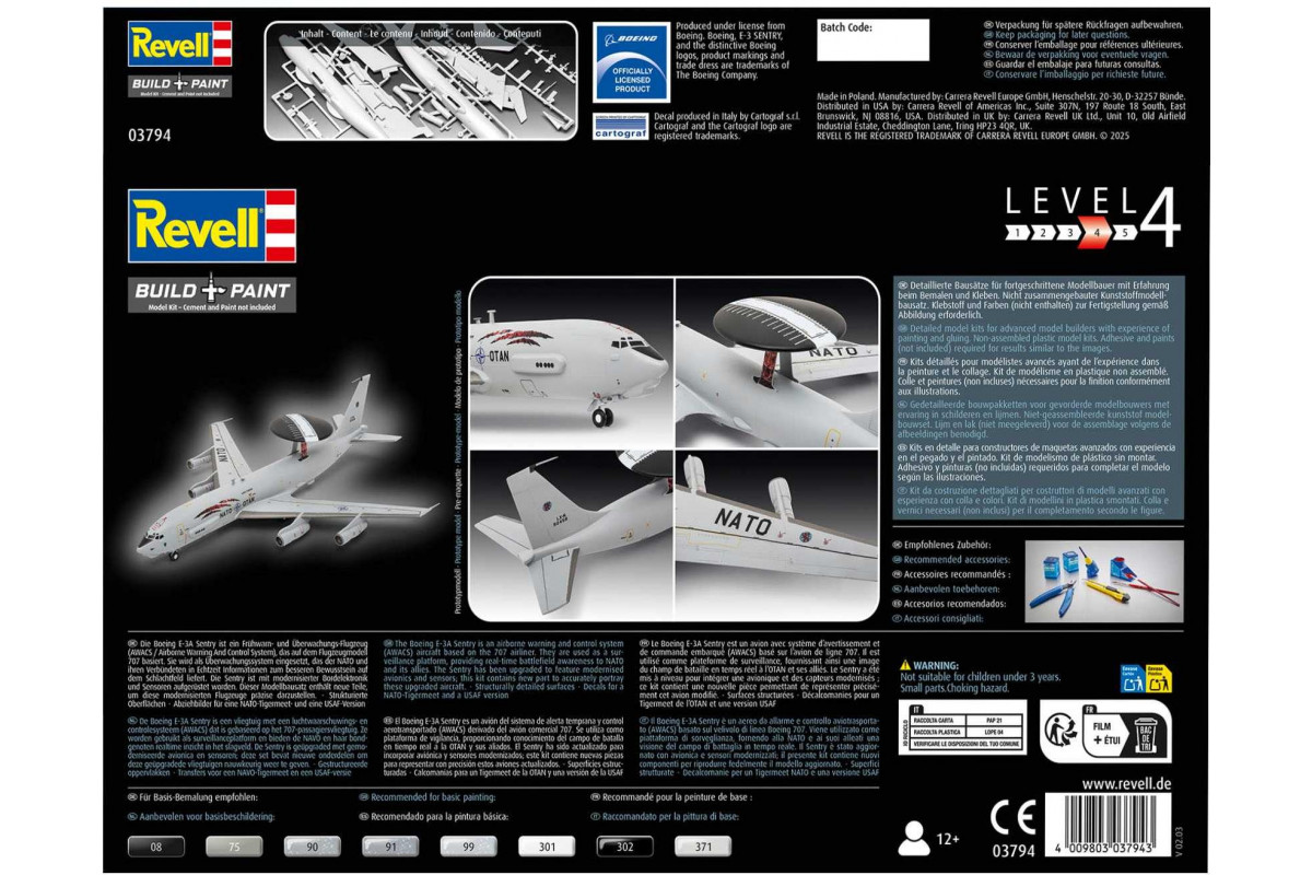 Přesnost se snoubí s vášní: Se stavebnicí Boeing E-3A Sentry můžete své modelářské dovednosti proměnit ve fascinující miniaturní dílo. Ikonický letoun AWACS čeká na to, až si ho sestavíte v měřítku 1:144. Díky působivým rozměrům 323 mm na délku a 308 mm v rozpětí křídel se hotový model stane skutečnou ozdobou vaší sbírky.