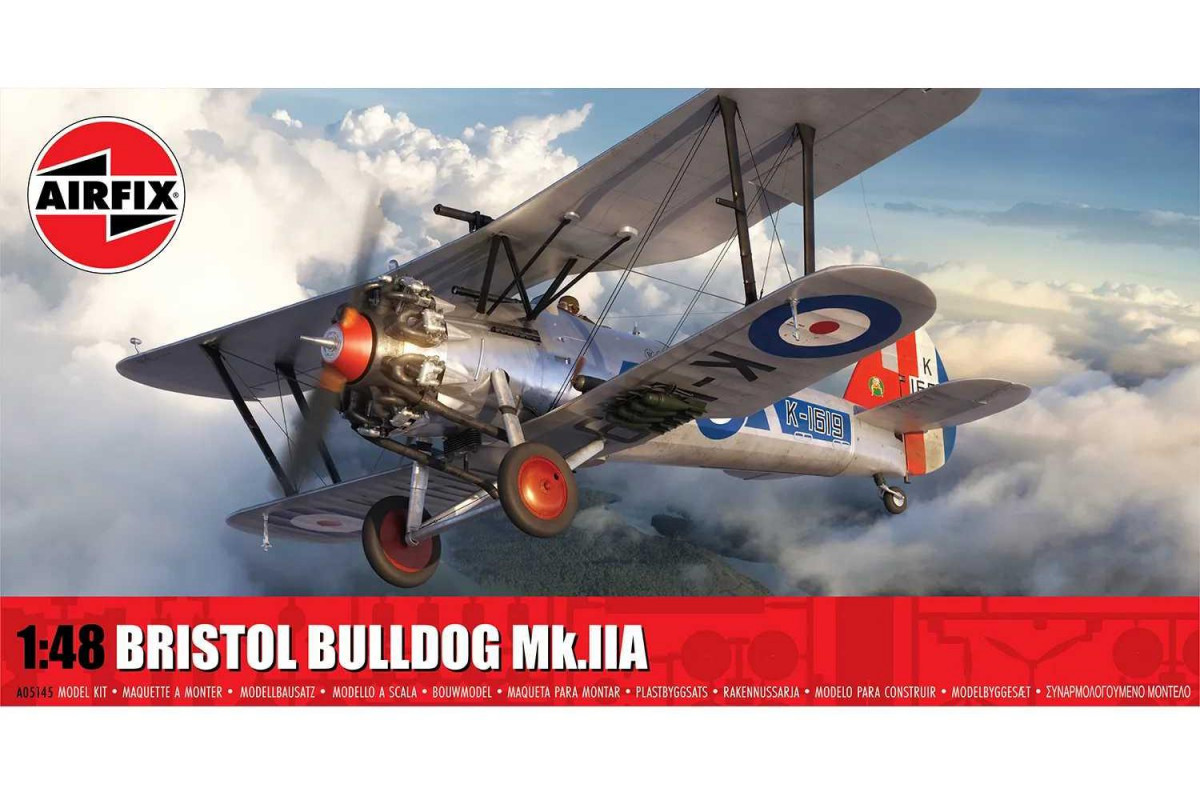 Stavebnica Bristol Bulldog Mk.IIA v mierke 1:48 zobrazuje britský dvojplošný stíhací lietadlo z medzivojnového obdobia, ktoré bolo v 30. rokoch hlavným stíhačom RAF.