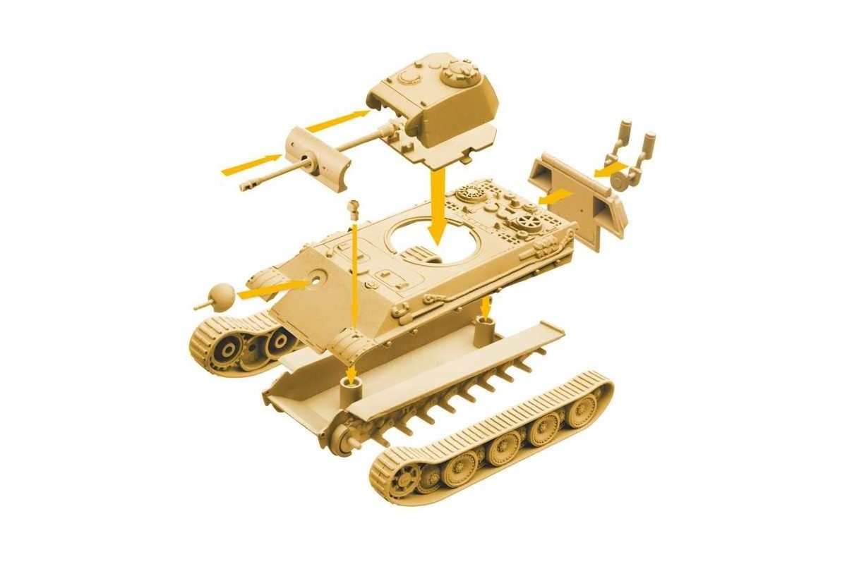 Nezložený a nenafarbený plastikový model vojenskej techniky z obdobia druhej svetovej vojny. K úspešnému dokončeniu tejto stavebnice je potrebné dodatočné príslušenstvo a nástroje, ktoré nie sú súčasťou balenia. Model je potrebné najprv zlepiť lepidlom vhodným na plastikové modely. Po skompletovaní je potrebné povrch natrieť farbami určenými na plastikové modely. Z našeho sortimentu si môžete vybrať akrylové (vhodné pre začínajúcich modelárov), lakérové (vhodné na použitie airbrushom) alebo enamelové farby. Ak chcete modelu dodať viac realistickosti, odporúčame zakúpenie špeciálnej chémie, ktorá dodá modelu vzhľad prevádzkového opotrebenia a ďalších zaujímavých efektov.