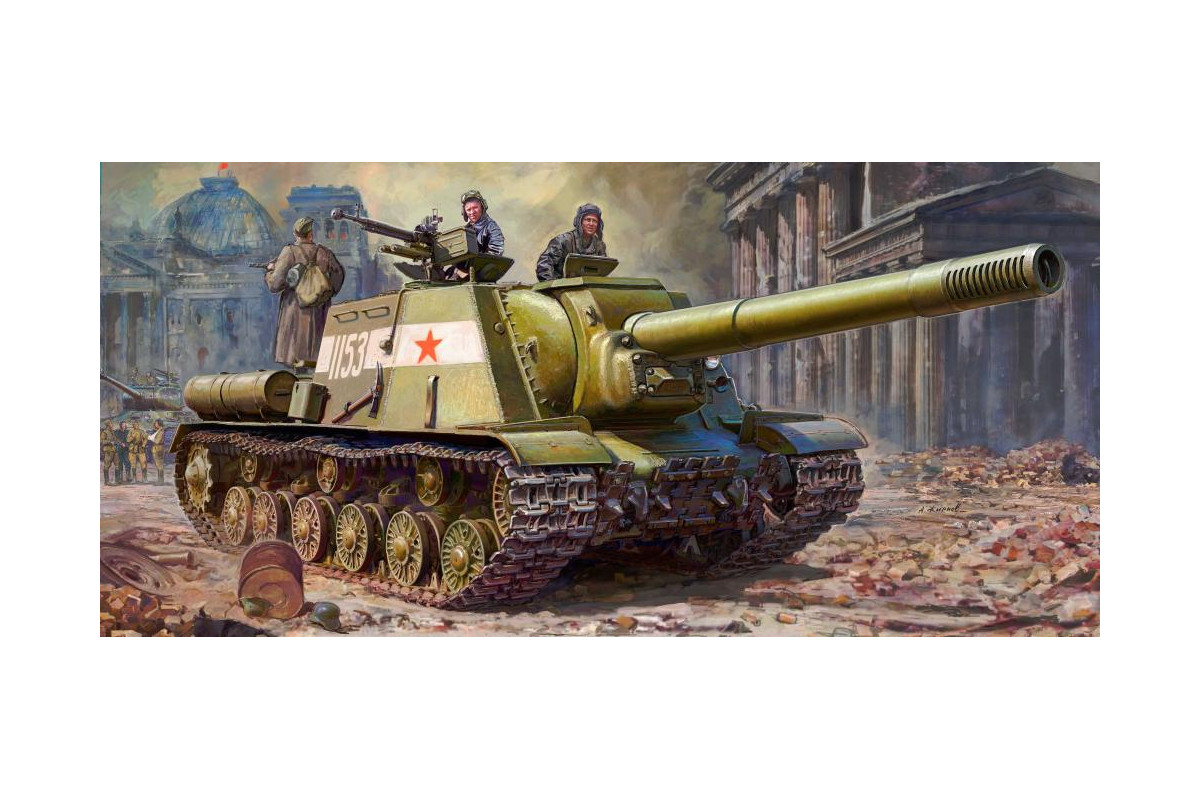 Plastikový model Soviet Self-propelled Gun ISU-152 v mierke 1/35 od Zvezda (kit č. 3721) predstavuje ťažké sovietske samohybné delo prezývané „Zveroboj“, známe svojou ničivou palebnou silou počas druhej svetovej vojny.