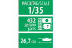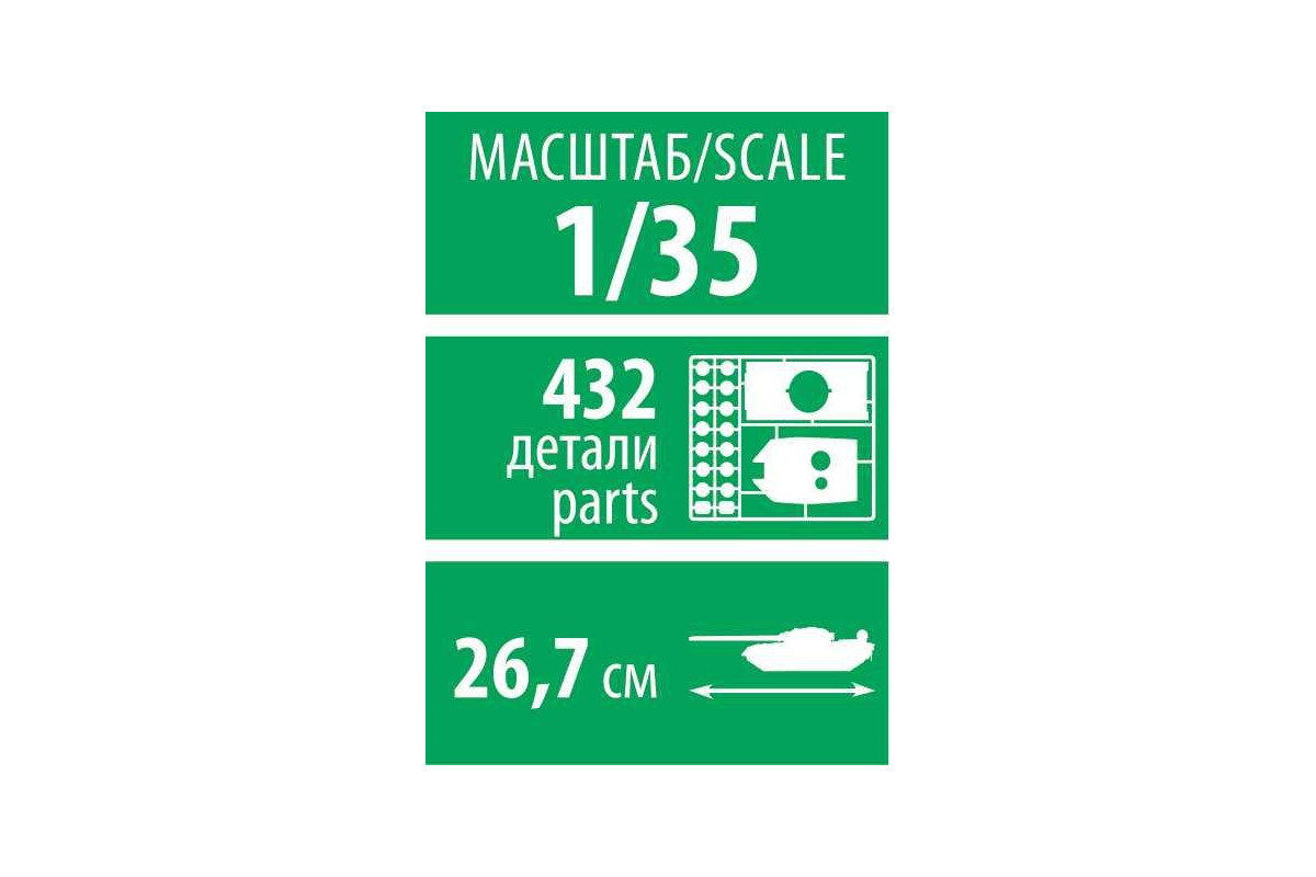 Model tanku ke slepení. Velikost: 1:35; 26,7 cm. Balení obsahuje: 432 dílků ke slepení.