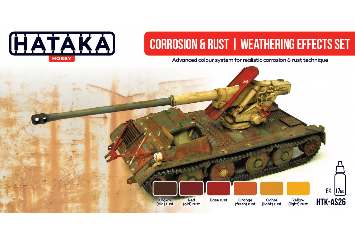 Starostlivý výber farieb v tejto sade poveternostných vplyvov, umožňuje dosáhout reálnych účinkov korózie a hrdze na modeli v každom meradle. V závilosti na požadovanom efektu sú k dispozícii rôzne tóny hrdze. Kombinácia těžchto farieb zaisťuje maximálnu dosiahnutie výsledku.