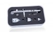 Pochromované tělo pistole má v horní části závit, díky kterému lze namontovat jeden ze tří kalíšků, které jsou obsaženy  vbalení - 2ml, 5ml, 13ml.